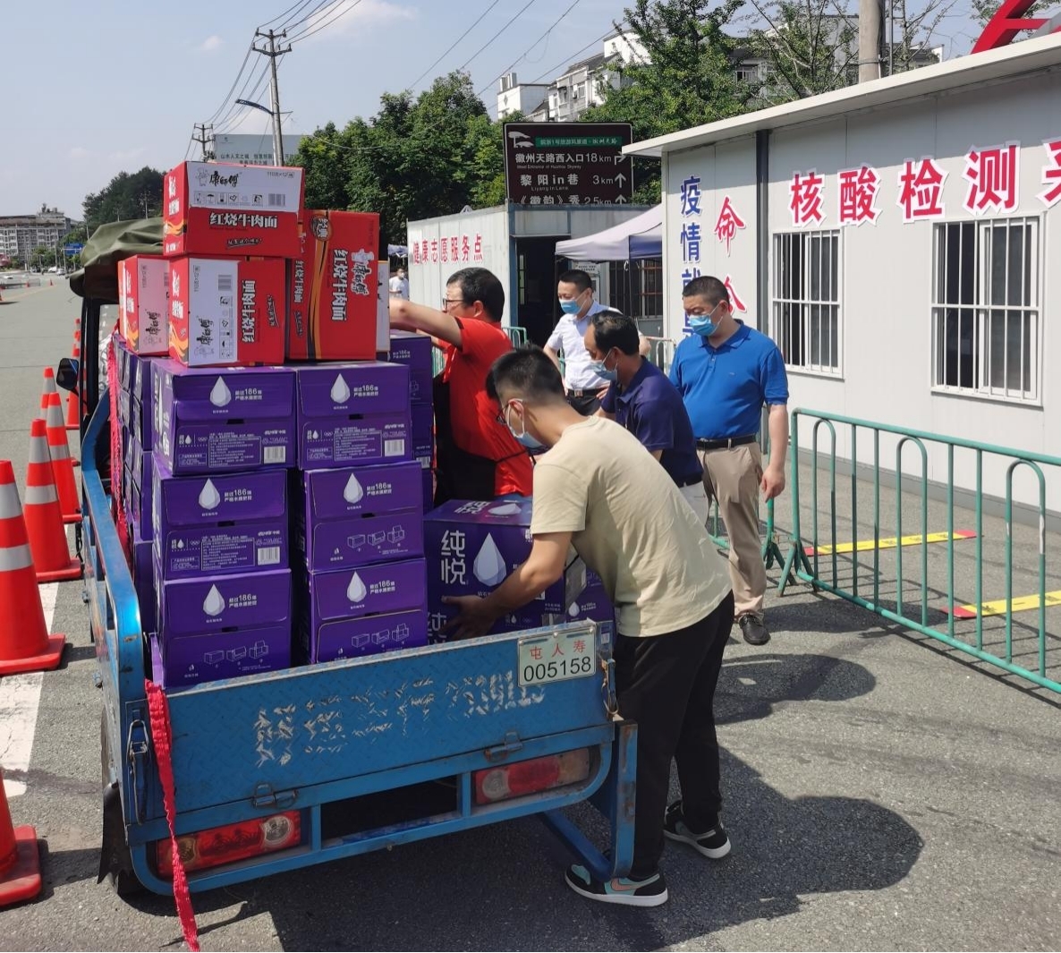 2022年6月14日下午,屯溪區(qū)統(tǒng)戰(zhàn)部、屯溪區(qū)工商聯(lián)副主席吉志勇、集團(tuán)公司黨支部書記李惠明、人力資源部經(jīng)理姚紅梅等若干代表分別赴屯溪區(qū)高速二號(hào)口和三號(hào)口開展志愿服務(wù)活動(dòng),看望慰問奮戰(zhàn)在疫情防控一線的工作人員,為他們送去礦泉水、方便面、八寶粥等物資。