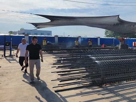 副總經(jīng)理李小龍視察鋼筋加工現(xiàn)場