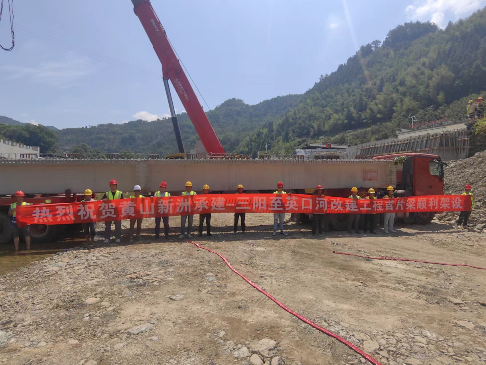 連日的持續(xù)高溫擋不住筑路人的步伐,8月5日上午,炎炎烈日之下,隨著煙花爆竹的一聲聲爆炸,我公司承建的歙縣三陽-英坑河口農(nóng)村道路改建工程,K1+148線外橋第一片梁板架設(shè)成功。