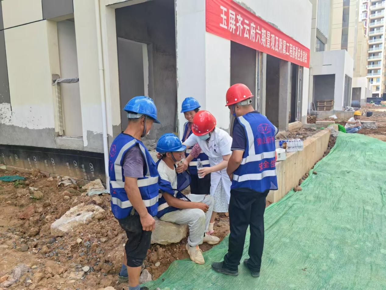 2024年8月15日,隨著炎炎夏日的持續(xù),我公司承建的玉屏齊云府六期景觀及附屬工程項(xiàng)目上由黨支部、工會、工程技術(shù)部聯(lián)合成功舉行了一場高溫防中暑應(yīng)急演練。此次演練旨在提高項(xiàng)目團(tuán)隊(duì)在高溫環(huán)境下的應(yīng)急處理能力,確保施工作業(yè)人員