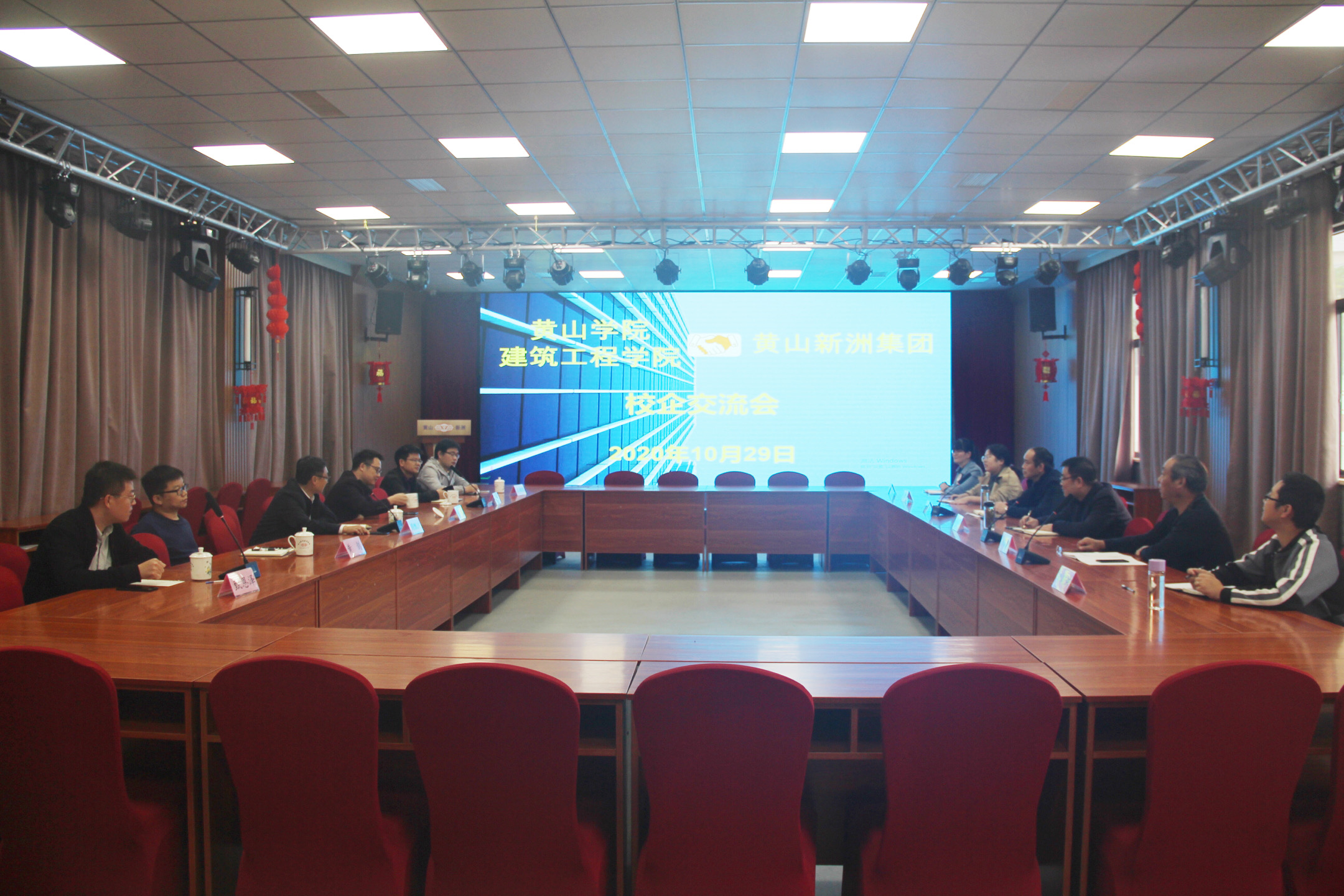 2020年10月30日下午,黃山學院建筑工程學院院長周甄川等一行六人蒞臨我司進行校企交流與研討,新洲集團總經(jīng)理李利成攜各部門經(jīng)理隆重接待了校方院系領(lǐng)導(dǎo)。