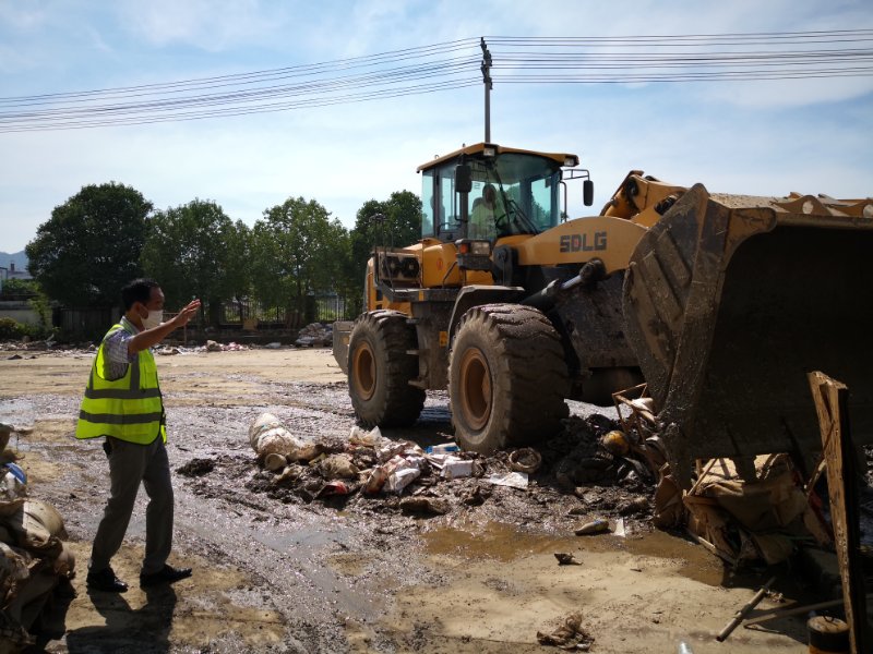 上午8時(shí)許,黃山新洲公司黨員、入黨積極分子、抗洪搶險(xiǎn)志愿者開著鏟車、灑水車從屯溪區(qū)出發(fā)到達(dá)歙縣經(jīng)開區(qū)受澇嚴(yán)重的黃山順濤管業(yè)有限公司進(jìn)行衛(wèi)生清掃,先清理垃圾及淤泥,再進(jìn)行集中消毒消殺。烈日炎炎,新洲支部的黨員志愿者們個(gè)個(gè)不怕臟,不怕累,頂著烈日,揮汗如雨。通過一個(gè)上午的勞動(dòng),在人機(jī)配合下,掃除了垃圾,清除了表面泥土,受災(zāi)企業(yè)的工作環(huán)境煥然一新。