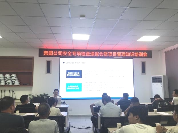 為積極防范各類事故發(fā)生,強(qiáng)化風(fēng)險意識,確保各在建項目施工安全穩(wěn)定,集團(tuán)公司于7月下旬組織開展了安全生產(chǎn)專項檢查,并于2023年8月19日在綠洲公司二樓會議室召開了關(guān)于安全專項檢查通報會暨項目管理知識培訓(xùn)會。會議由集團(tuán)公司分管安全副總經(jīng)理張遠(yuǎn)林主持,黨支部書記李惠明、法務(wù)部、安全部、財務(wù)部、綜合辦公室、人力資源部、工程部及項目管理人員共計41人參會。