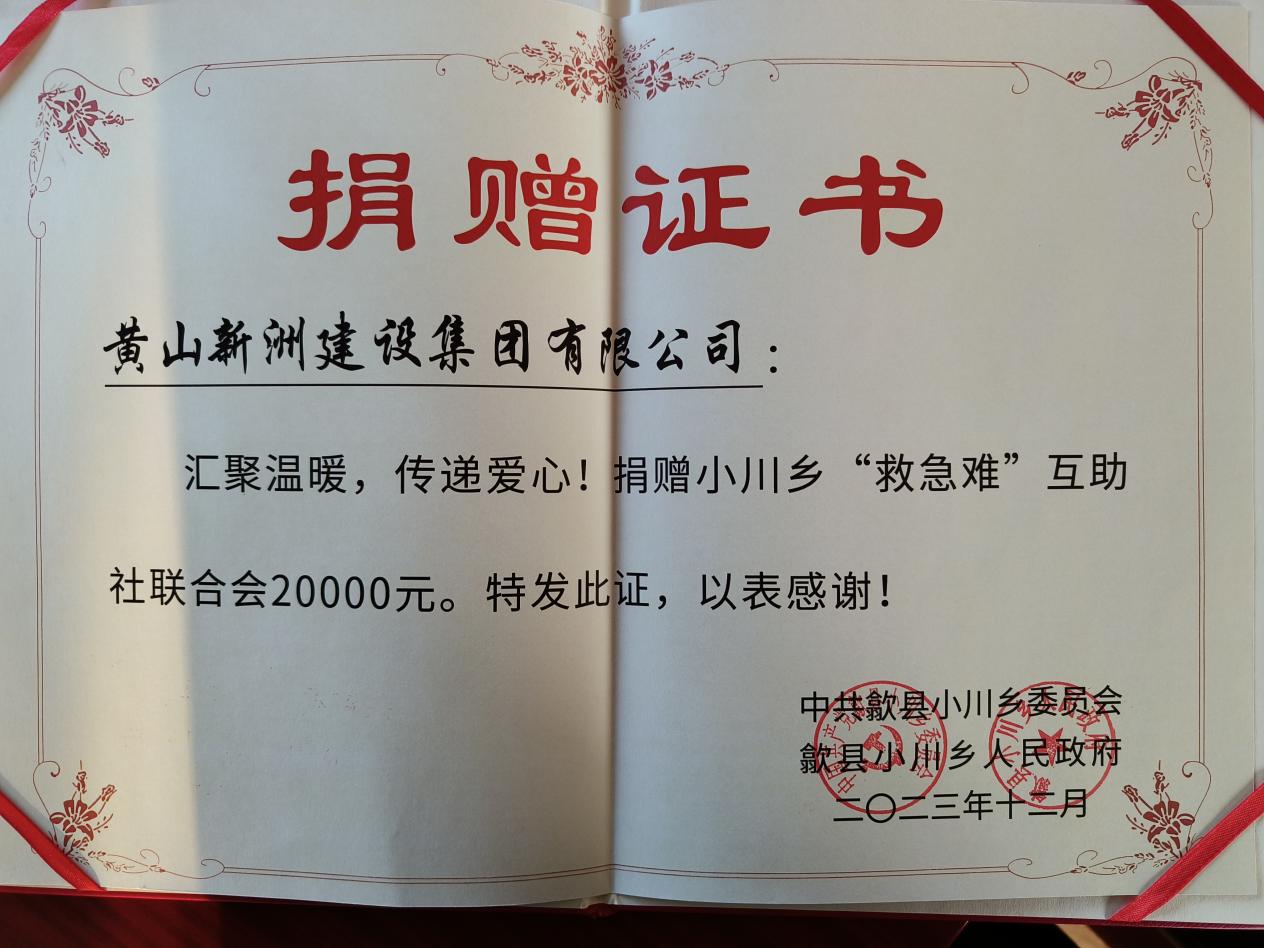 12月8日上午,來(lái)自17位愛(ài)心企業(yè)家和愛(ài)心人士齊聚歙縣小川鄉(xiāng)參加“救急難”互助社聯(lián)合會(huì)成立暨慈善捐贈(zèng)儀式,公司黨支部書(shū)記李惠明代表黃山新洲建設(shè)集團(tuán)有限公司向互助聯(lián)合會(huì)捐款2萬(wàn)元。
