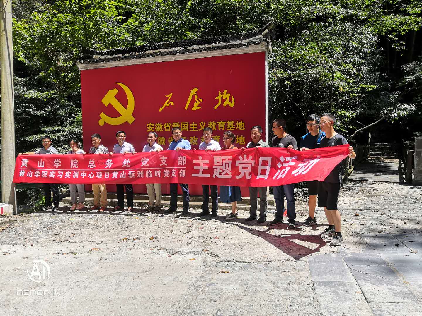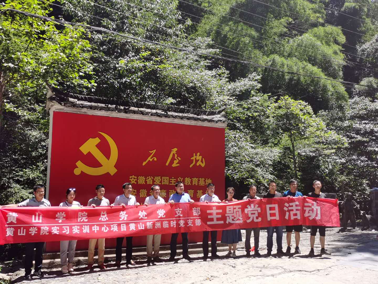 紀念中國共產(chǎn)黨成立99周年,重溫黨的光輝歷史,發(fā)揚黨的光榮傳統(tǒng),本著“以共建促黨建,以共建促了解,以共建促合作,以共建促發(fā)展”的原則,8月18日,黃山學院總務(wù)處黨支部和我公司黨支部聯(lián)合開展“校企共建 協(xié)同發(fā)展”主題黨日活動,總務(wù)處、黃山新洲黃山學院實習實訓中心項目臨時黨支部全體黨員同志參加活動。石屋坑村長陪同全程講解。