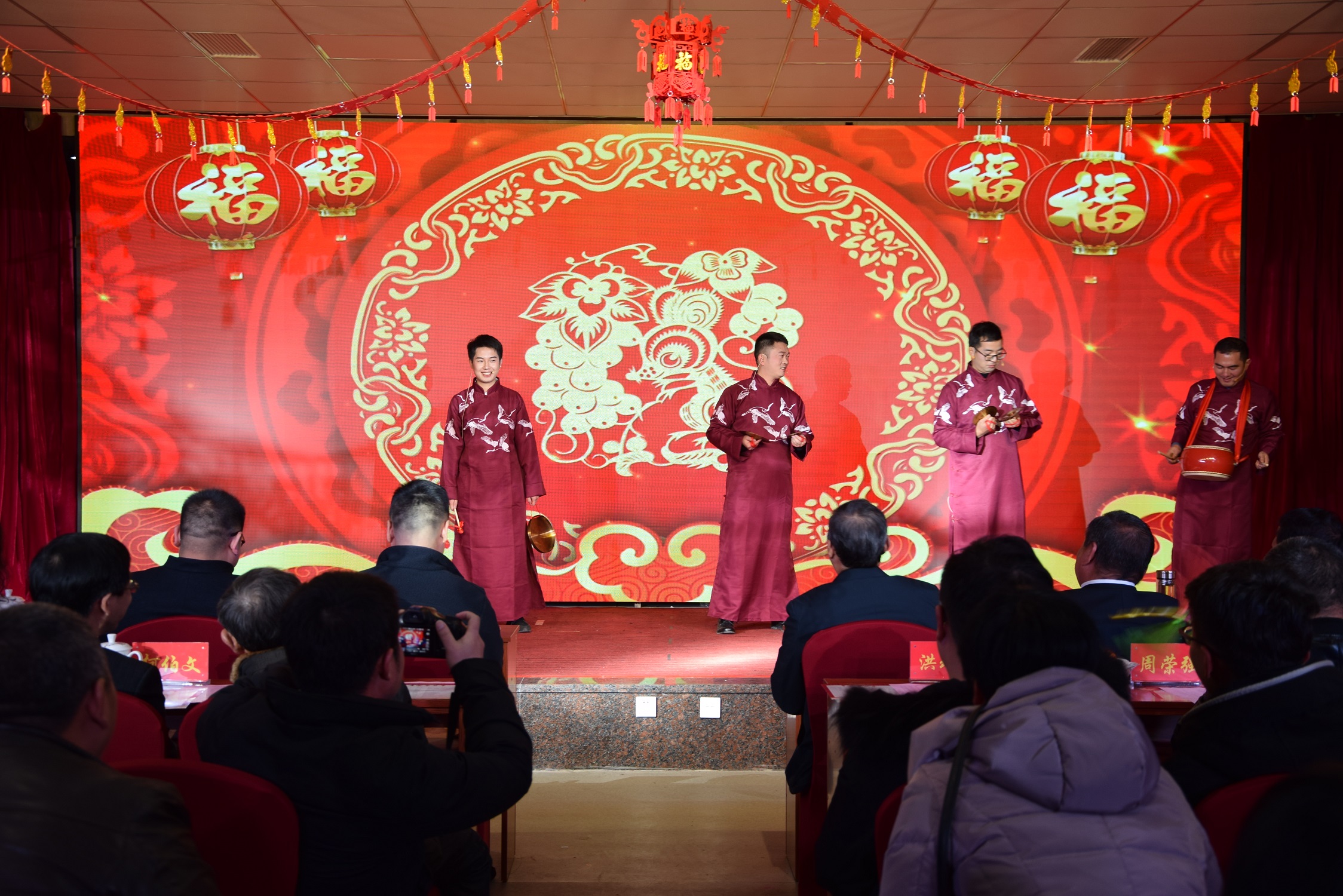 本次年會上,新洲公司員工自創(chuàng)自演了豐富多彩的文藝節(jié)目,激動人心的抽獎活動讓整場晚會高潮迭起。房建技術部表演的打鼓《愛我中華》給大家?guī)砹艘粋€精彩的開頭,總公司女同胞共同演出的《和諧大家園》作為開場舞,歙縣分公司的《恭喜發(fā)財》表達了新洲員工對公司明天的美好祝愿。公路技術部的小品《安全第一》、經(jīng)營部的《非誠勿擾》和安全部、工程部共同演出的小品《新聞播報》更是HIGH翻全場??偨?jīng)理李利成和副總張遠林、常務副經(jīng)理李小龍、辦公室主任朱曉偉朗誦的《致新洲》激發(fā)了大家對新洲歷程的回憶和對未來的憧憬。安徽交通職業(yè)技術學院新洲班學生帶來的歌曲串燒和黃山學院學生表演的舞蹈讓大家陶醉不已,還有新洲檢測公司獻出的歌舞、新洲技術服務公司的三句半《新洲頌》和合肥分公司帶來的吉它表演更是別出心裁。新洲黨支部的小合唱和最后的大合唱《難忘今朝》很好凸顯了新洲家人的奉獻與團結。節(jié)目過程中穿插的員工互動游戲熱鬧非凡,三項抽獎活動六個大獎將年會現(xiàn)場氛圍推向了高潮。節(jié)目演出后由公司領導及特邀嘉賓對公司2019年度先進集體、先進工作者、先進員工頒發(fā)了榮譽證書及獎金,并進行了表彰與嘉獎。公司全體成員也為獲獎同事獻上了最真誠的祝福和最熱烈的掌聲。